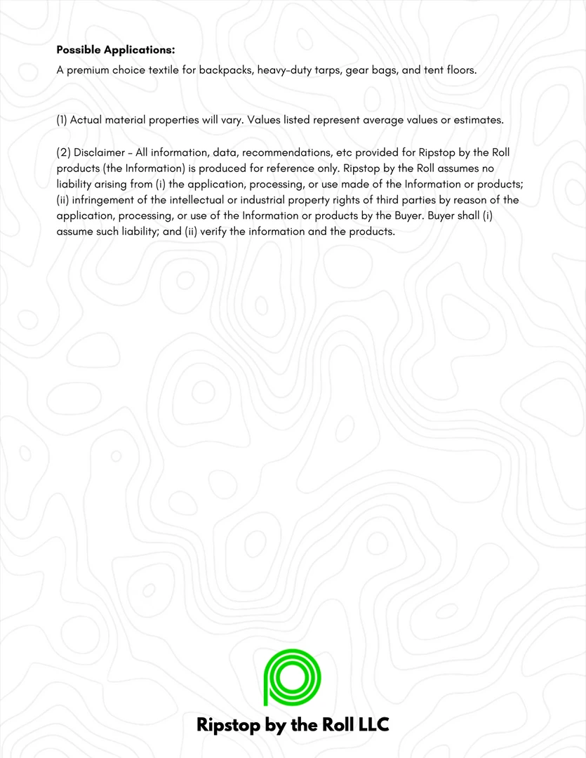 A premium choice textile for backpacks, heavy-duty tarps, gear bags, and tent floors.