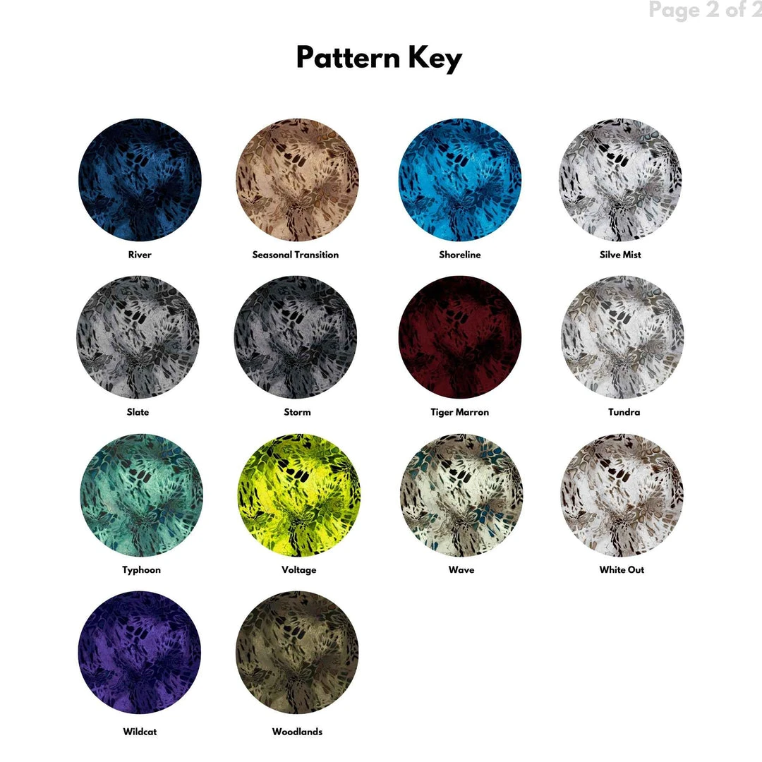 Colors/Patterns MP (Multi-Purpose), Woodlands (*NOTE – full palette of Prym1 camo patterns available via print on-demand HERE)