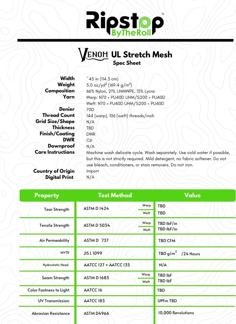 NOTE – This is a full roll of Venom UL Stretch Mesh (25 yds). Looking for smaller amounts? Click HERE for sales by the yard.